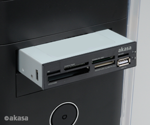 Additional USB port provides extra connectivity for convenient data transfer from USB memory sticks or USB enabled mobile phones. Designed to fit 3.5” PC bay, contains two front fascia panels, choose mat black or classic white. Two LED’s indicate power on, card in and data transfer.