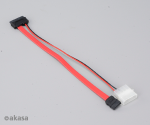 This cable connects data and power to SATA Slimline Optical Drives. Designed for Slimline SATA DVD and Blu-Ray drive. Converts standard motherboard 7-pin SATA (data) and 4-pin PSU Molex (+5V supply) to single block Mini SATA. 20cm long for easy routing in Mini-ITX cases.