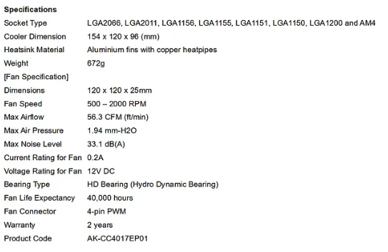 The Aluica H4 heatsink features an eccentricity design, which is a mounting mechanism which allows for different heights of RAM clearance. Simply adjust the clips attached to the fan and mount the fan above any RAM modules. Work or play, bring on the heat with the Alucia H4 — with a maximum 185W TDP, this premium cooler can be used with the vast majority of high-end CPUs! The heatsink has four copper heatpipes with Direct Contact technology, which provides a high level of heat dissipation. Compatibility is not an issue, with the mounting kit included with the cooler, which can fit LGA2066/2011/1156/1155/1151/1150/1200 and AM4, and a future update is planned for LGA1700. Akasa's premium T5 Pro-Grade Plus thermal paste is also included in the package, allowing the best heat dissipation possible from the CPU.