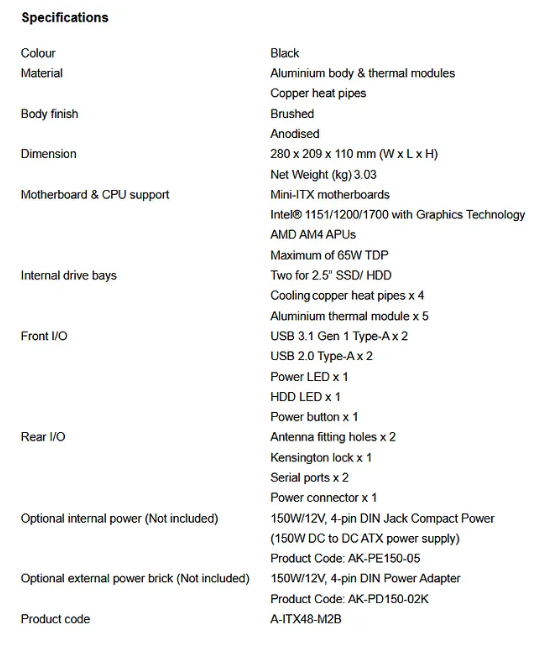 The curved edges are smooth, producing a softer effect, and allows the minimalist design to blend in well with almost any environment. The case is made to be displayed; it can be used as a statement piece in a home theatre, desktop setup, or recording studio. An optional external power pack (AK-PD150–02K) and the internal power adaptor (AK-PE150–05) are advised to make full use of the silent heat dissipation, which can be hidden away for a clean aesthetic.