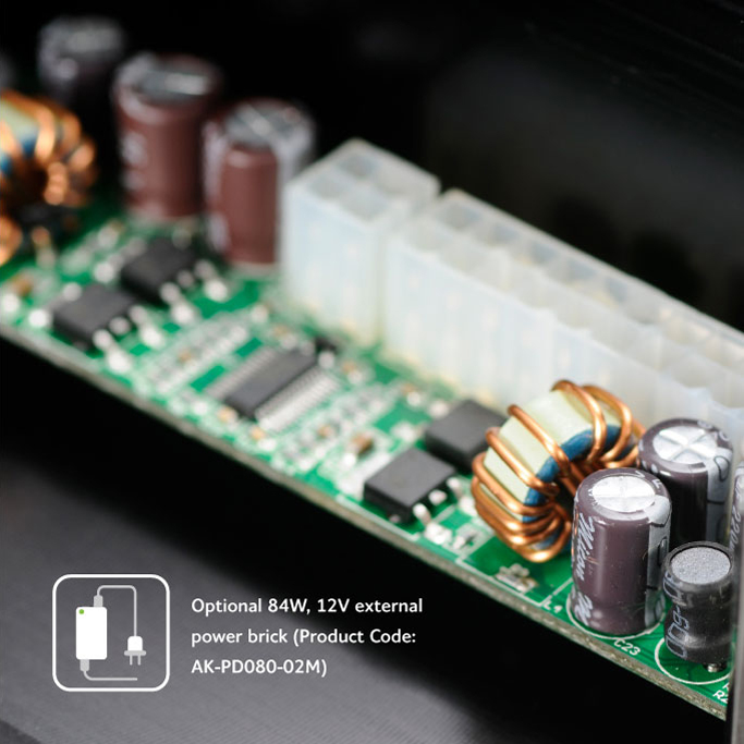 | External AC Power Adapter | 84W, 12V (Optional Akasa model: AK-PD080-02M) |