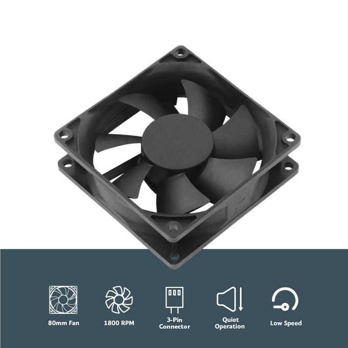 Ultra quiet fan, 80x80x25mm, 12V DC, 3-pin connector, Enter bearing, 1800RPM.