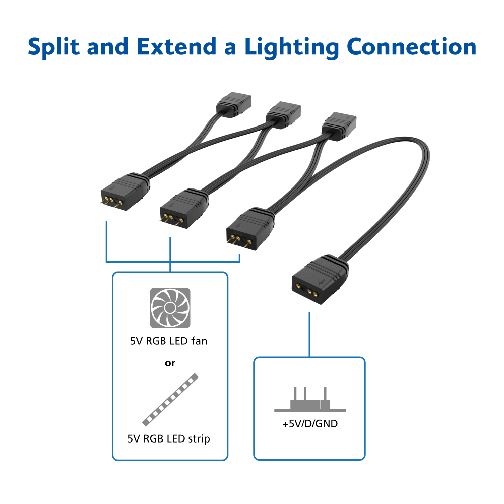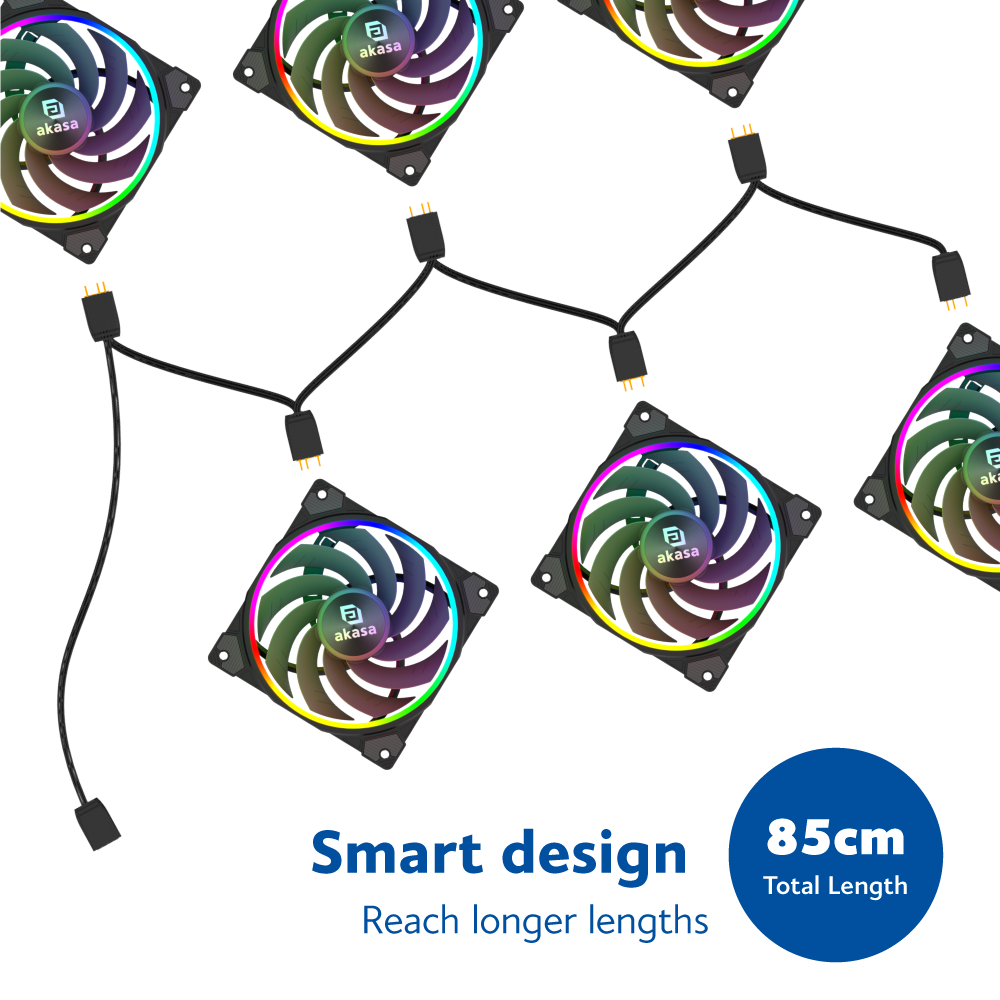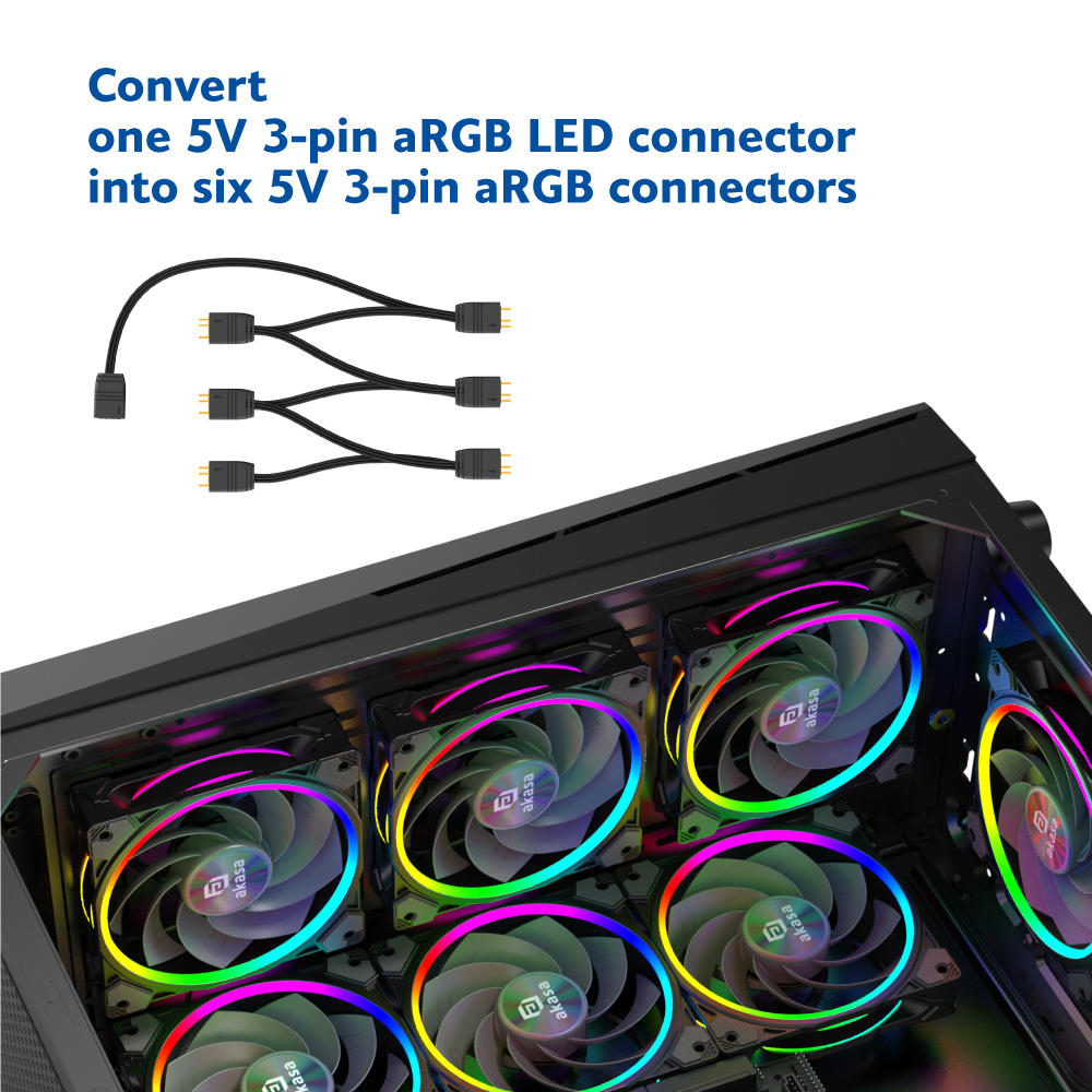 Easily convert 1 3-pin aRGB connector into 6 connectors effortlessly perfect for aRGB fans and other aRGB lighting. With the added convenience and versatility of our multiplier design which extends the cable to a max length of 85cm