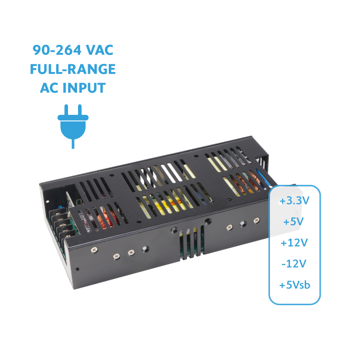 Operates from 90 to 264 VAC, compatible with power systems worldwide.
