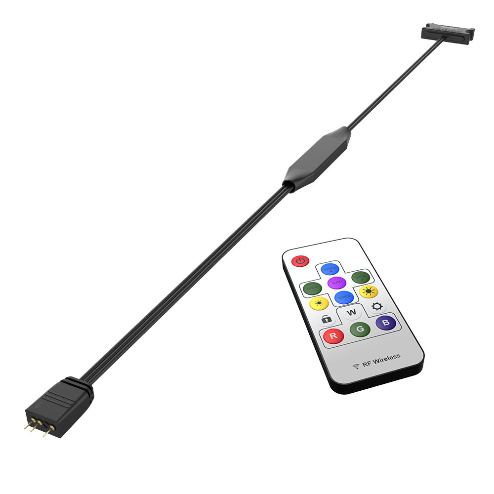 3-Pin Addressable RGB controller cable with remote, fully customisable with mode, speed and colour changing buttons.