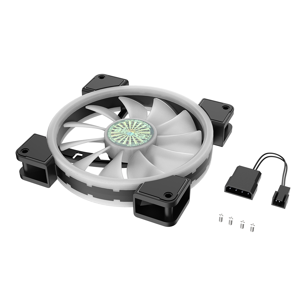 140mm RGB fan, 3-pin, twin-loop design with frosted blades for vibrant lighting