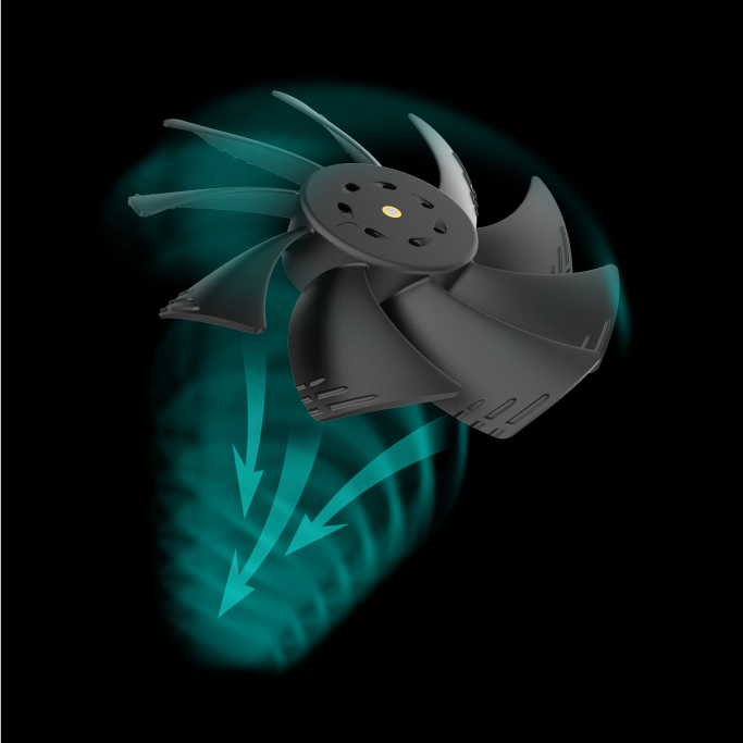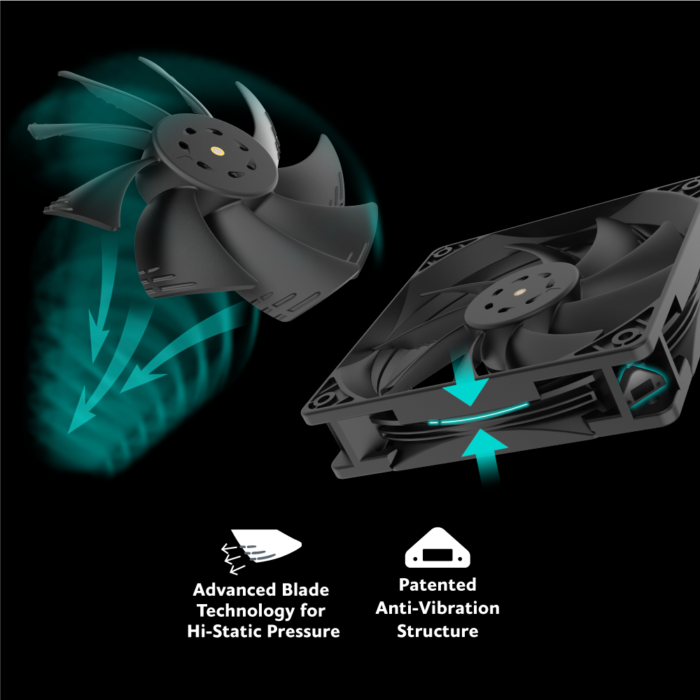 Advanced sickle-flow design provides focused hi-static pressure, releasing strong and concentrated streams of air, making it perfect for heatsinks and radiators. As well as heavy duty applications.