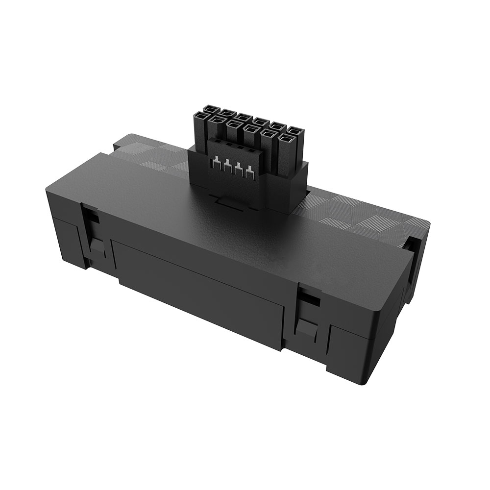 | Application | Right angle adapter for 12+4-Pin (male) connector to three 8-Pin (female) connector |
