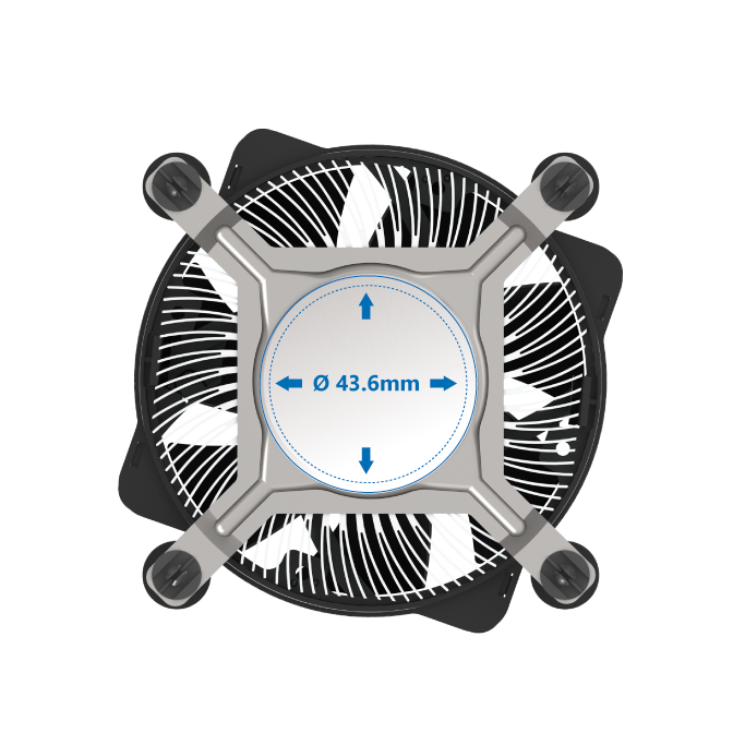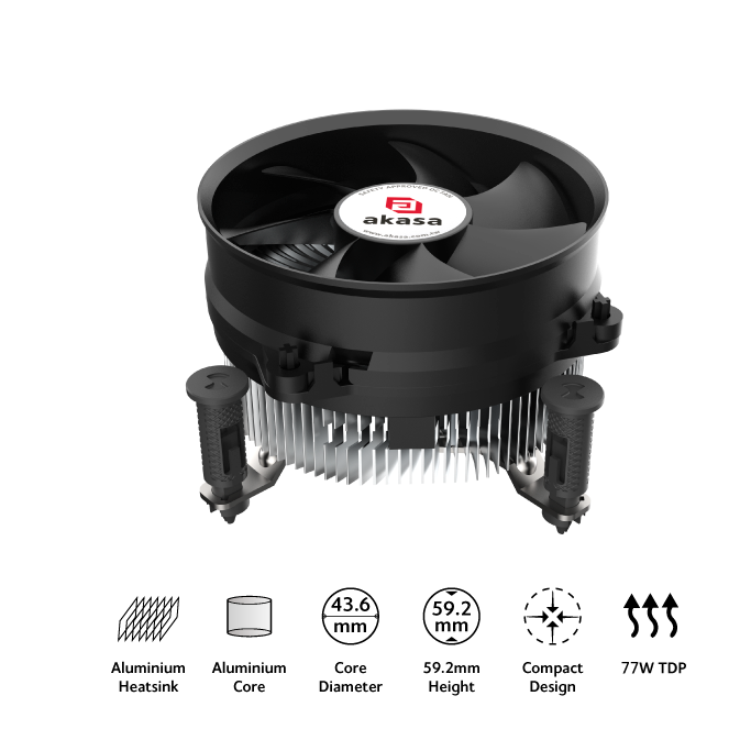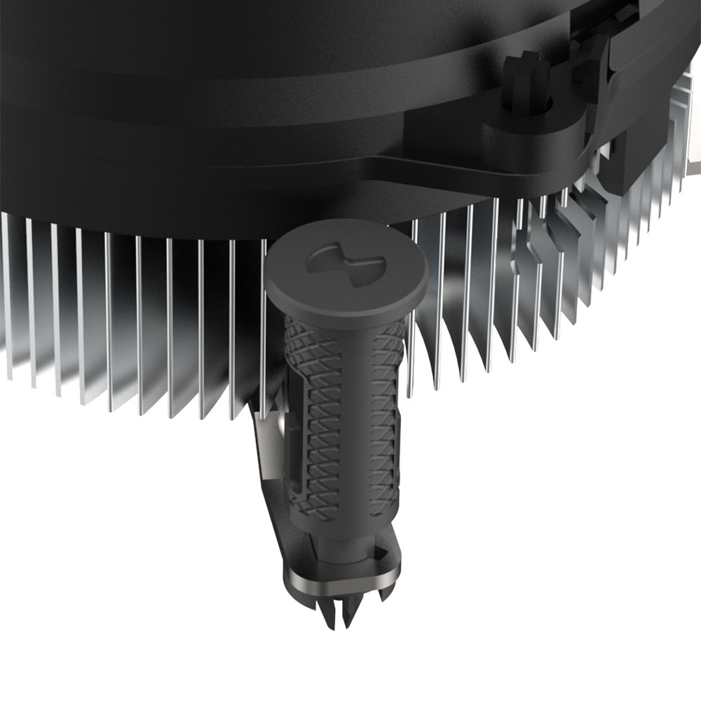 High-engineered aluminium heatsink features bi-ped fins and a large aluminium core base, ensuring maximum heat dissipation and thermal transfer. Designed to work with CPUs up to 77W TDP.
