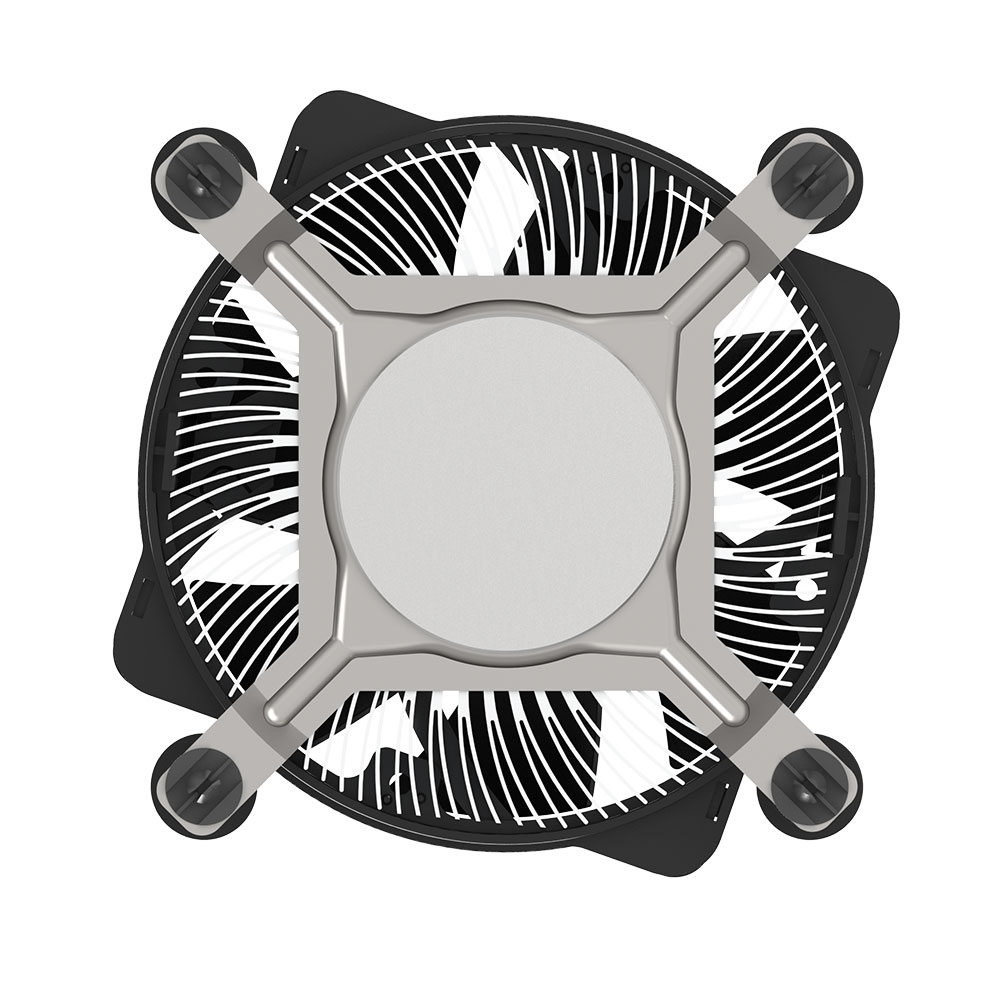 Aluminium core Intel® CPU cooler with 95mm low-noise PWM fan and bi-ped fin aluminum heatsink for LGA1851 and LGA1700 sockets. Designed for efficient cooling of up to 77W TDP. Features tool-free push pin mounting for easy installation and reliable retention. Perfect for small form factor (SFF) builds.