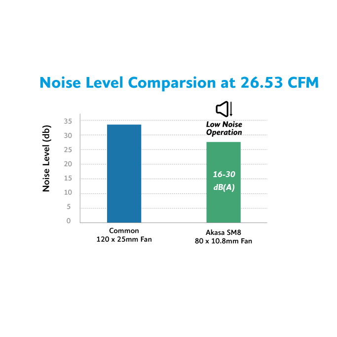 The fan features precision-engineered blades designed to deliver a maximum airflow of 26.53 CFM and static pressure of 1.81 mm-H2O, ensuring efficient cooling even in compact spaces.