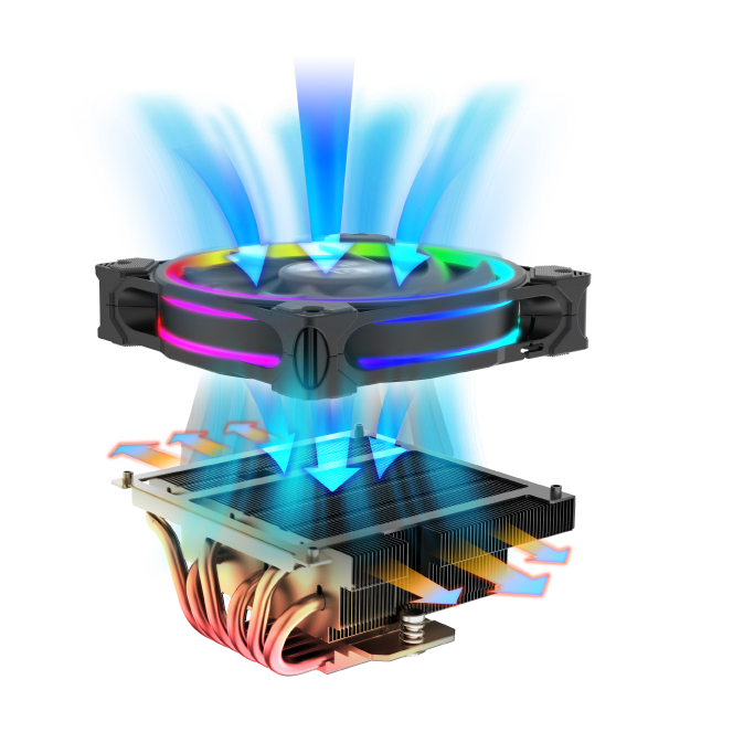 120mm SOHO AR fan combines aRGB lighting, advanced sickle blade design and intelligent PWM speed control for vivid, silent cooling performance. Hydro dynamic (HD) bearings extend fan life with its lubrication seal, further enhancing noise reduction.