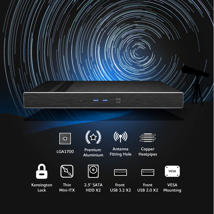 1U Fanless Thin Mini-ITX Case for Intel® LGA1700