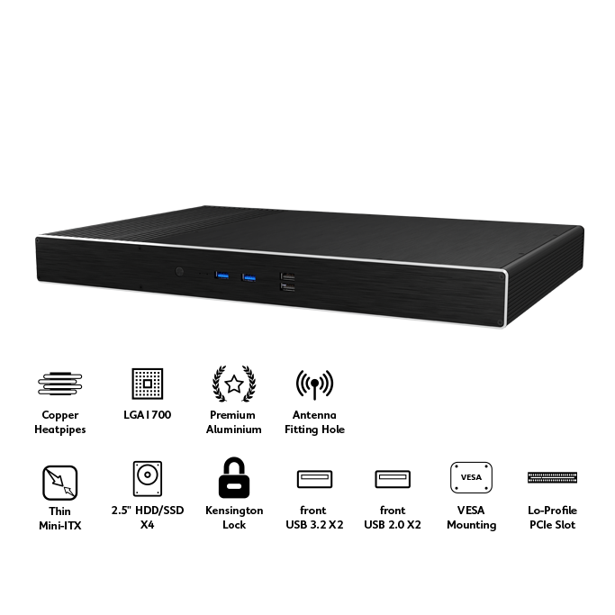 1U Fanless Thin Mini-ITX Case for Intel® LGA1700