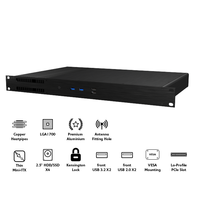 1U Rackmount Fanless Thin Mini-ITX Case for Intel® LGA1700