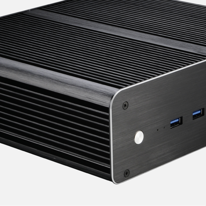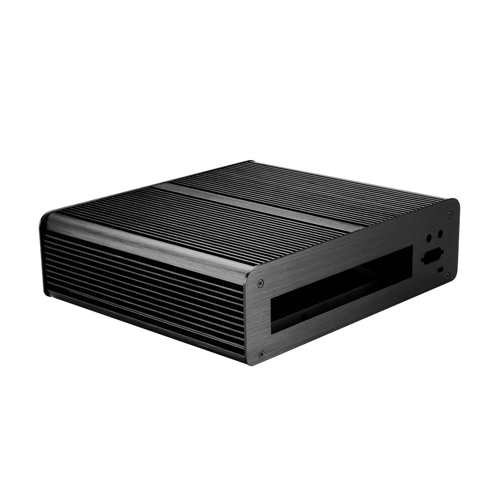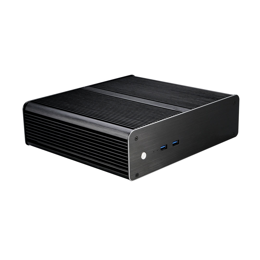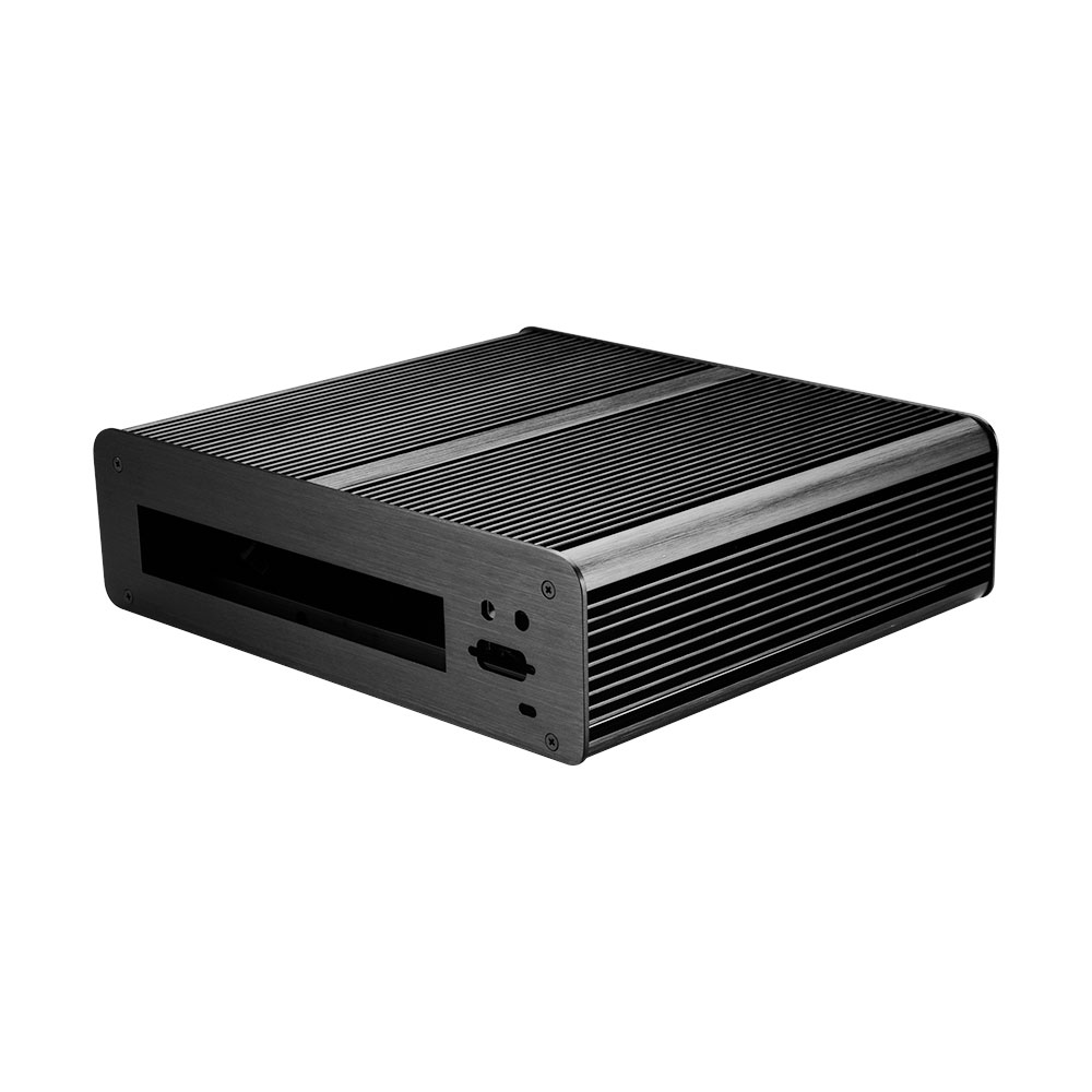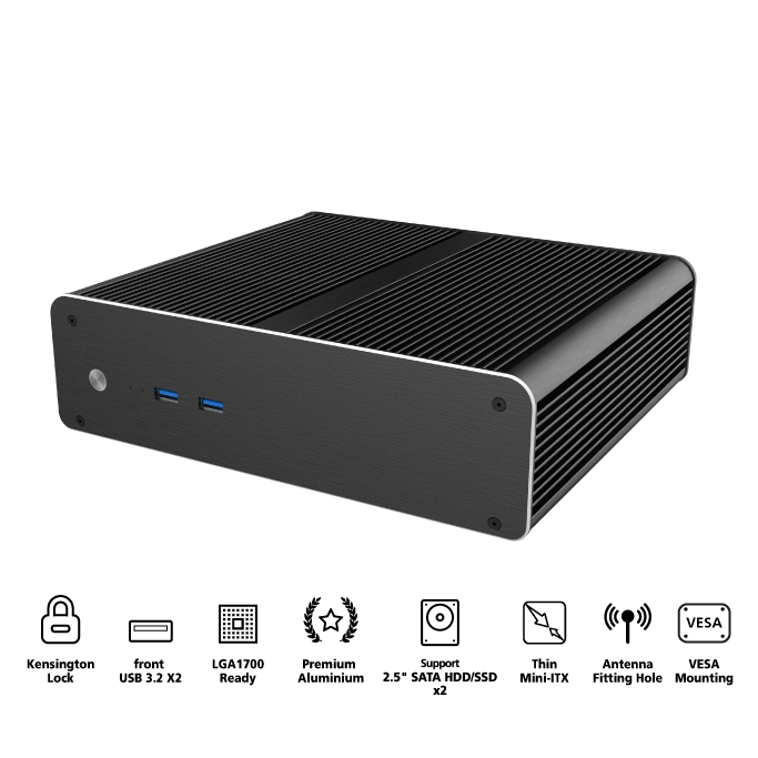 Fanless thin mini-ITX case with two USB 3.2 ports and two 2.5" drive bays. Suitable for VESA mount monitors saves valuable desk space.