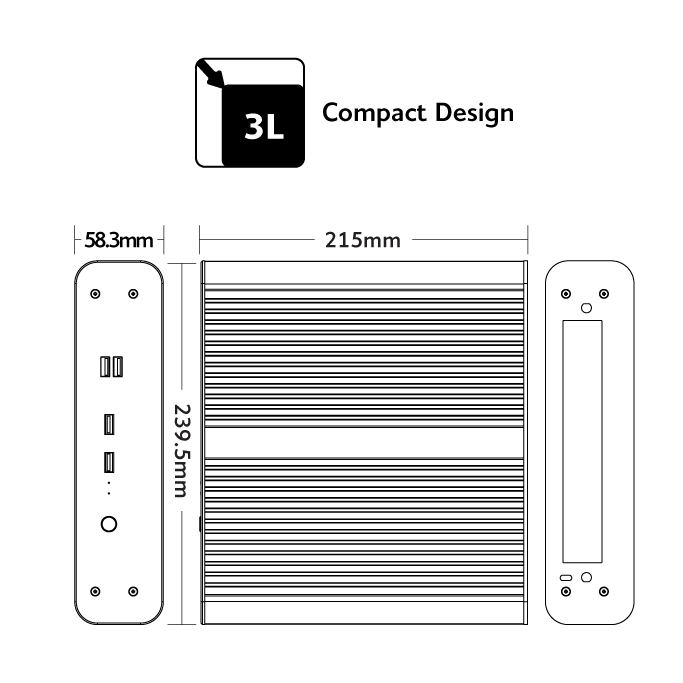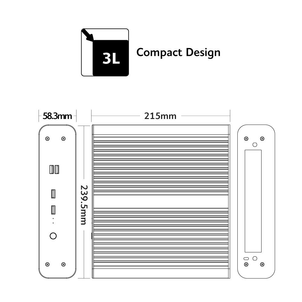 Completely silent mini PC case utilise all aluminium fanless CPU cooling design which acts as a heatsink to dissipate the heat to the surrounding.