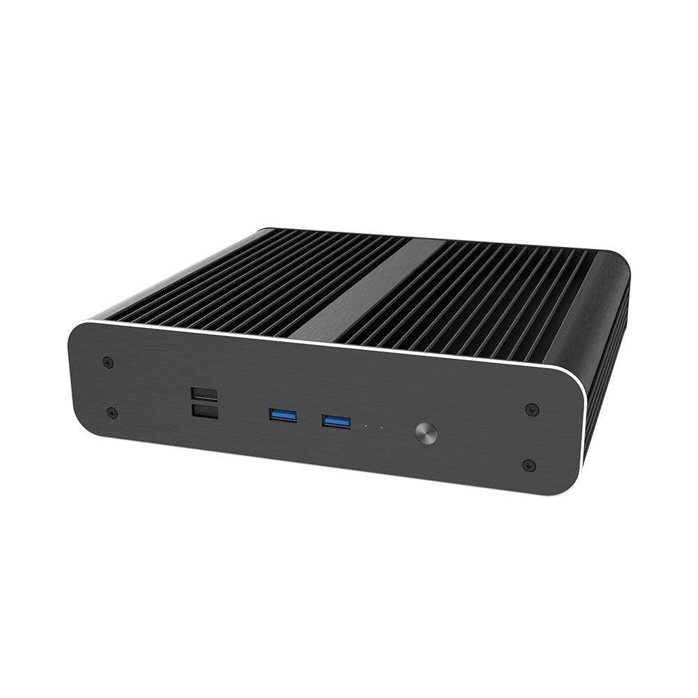 Compact fanless thin mini-ITX case for industrial and Intel® 14th Generation (Raptor Lake Refresh) motherboards. With two USB 3.2 ports, two USB 2.0 ports and suitable for VESA monitor mounting saving valuable desk space.