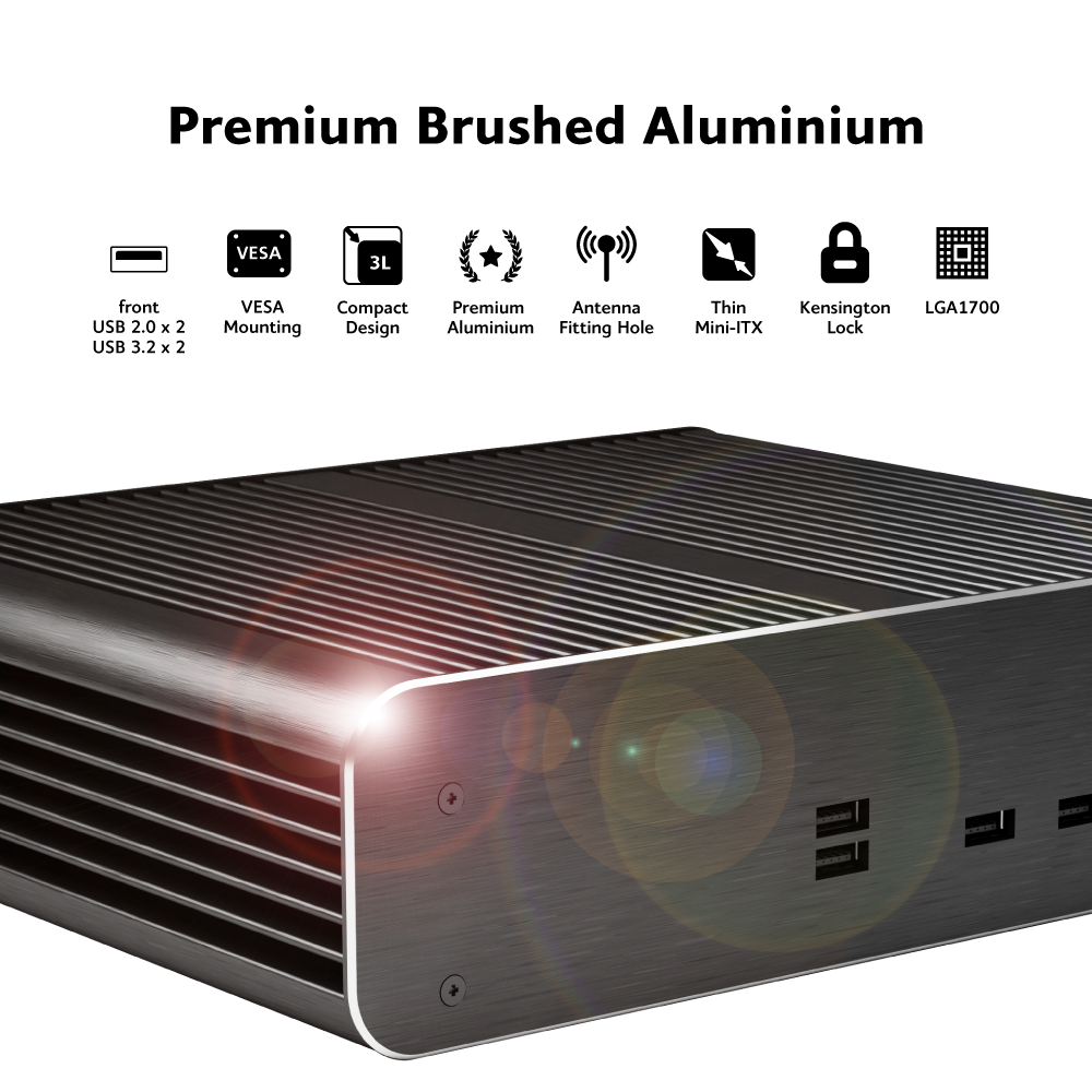 Compact Fanless Case for Industrial & Long-Life Intel® LGA1700 Thin Mini-ITX Motherboards