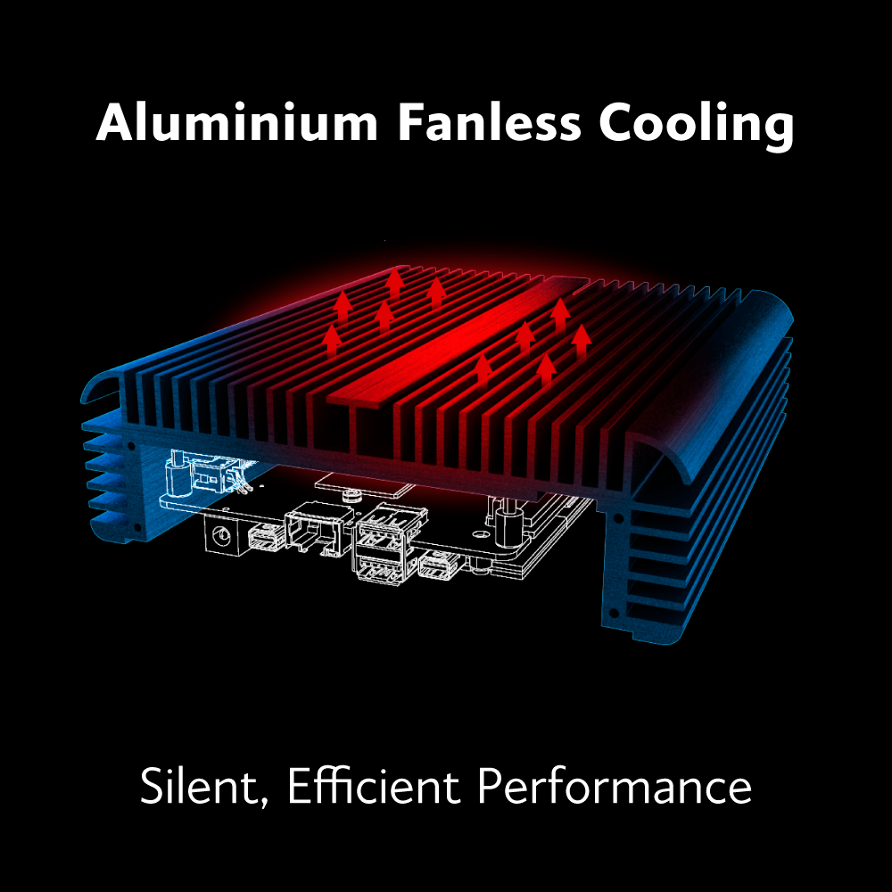 Optional bespoke engraving and colouring solutions to highlight and differentiate your fanless system solution. Requires a minimum order quantity - please talk to our Team about the different options available.