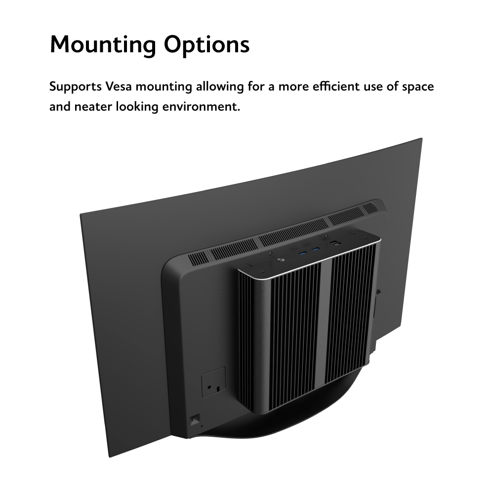 Supports Vesa mounting allowing for a more efficient use of space and neater looking environment.