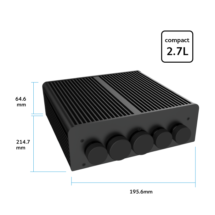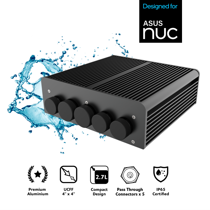 2.7L aluminium chassis designed for the ASUS NUC 14/15 Pro, perfect for applications where a discrete and compact IP65 system is required.