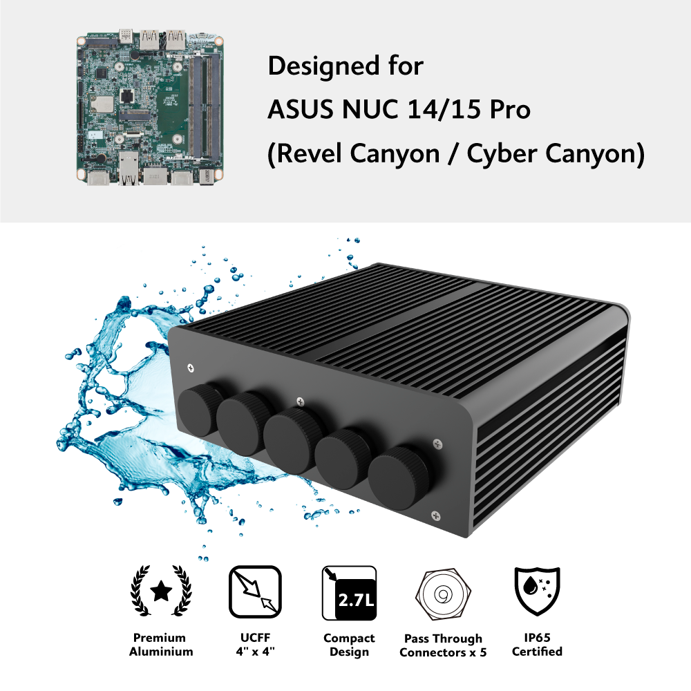 Compact 2.7L IP65 Waterproof Fanless Case for ASUS NUC 14/15 Pro (Revel Canyon / Cyber Canyon)
