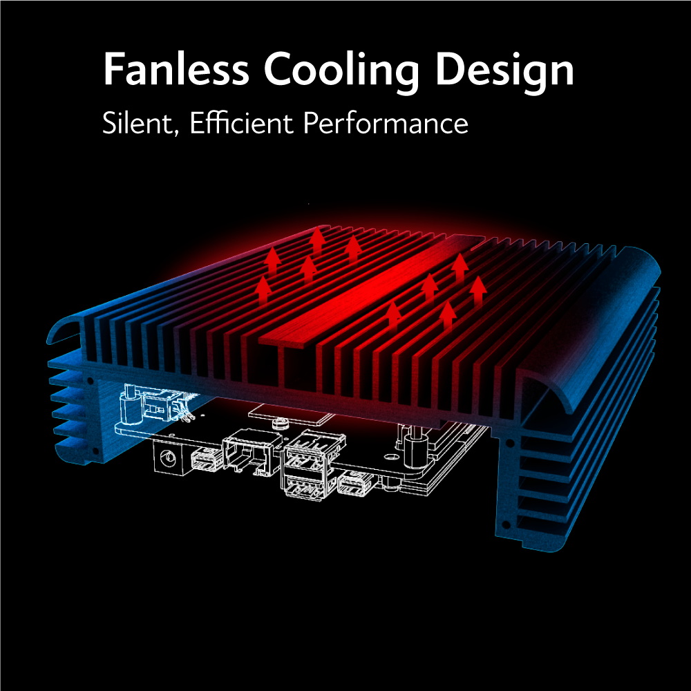 Featuring a cutting-edge aluminum fanless CPU cooling design, ensuring silent and efficient operation. This advanced cooling solution combines exceptional heat dissipation with a sleek, modern aesthetic, delivering both performance and style for your fanless system setup.