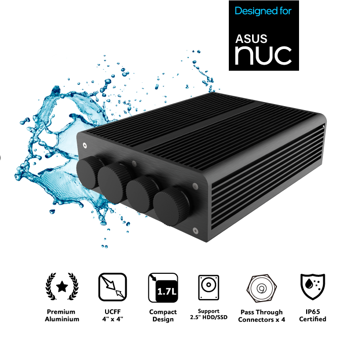 1.7L aluminium chassis designed for the ASUS NUC 14 Pro with Core™ I3, perfect for applications where a discrete and compact IP65 system is required.