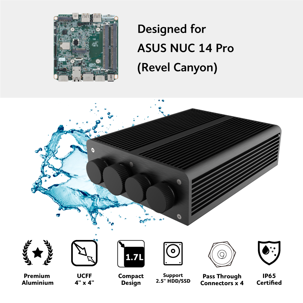 Compact 1.7L IP65 Waterproof Fanless Case for ASUS NUC 14 Pro with Core™ i3 (Revel Canyon)