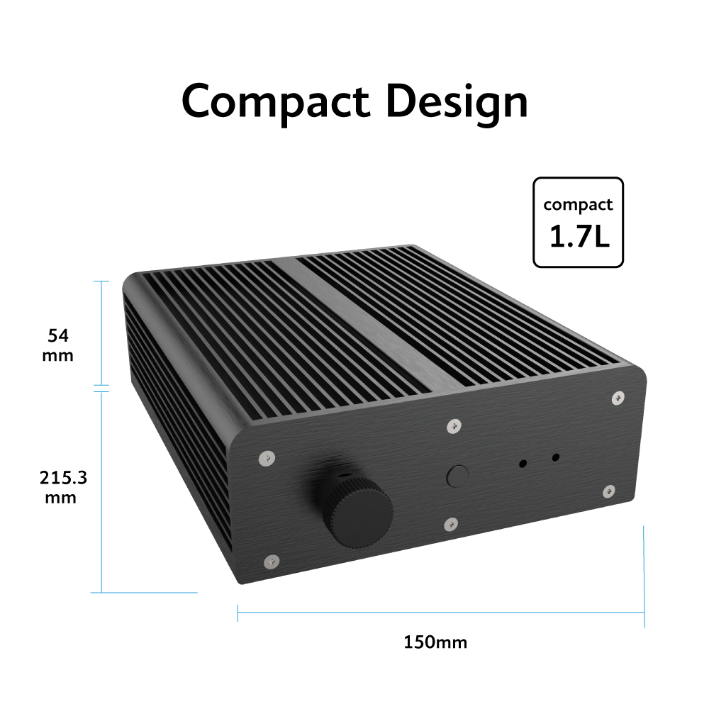 Featuring a cutting-edge aluminum fanless CPU cooling design, ensuring silent and efficient operation. This advanced cooling solution combines exceptional heat dissipation with a sleek, modern aesthetic, delivering both performance and style for your fanless system setup.