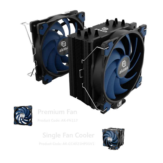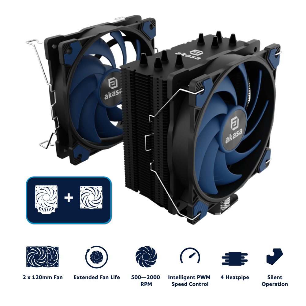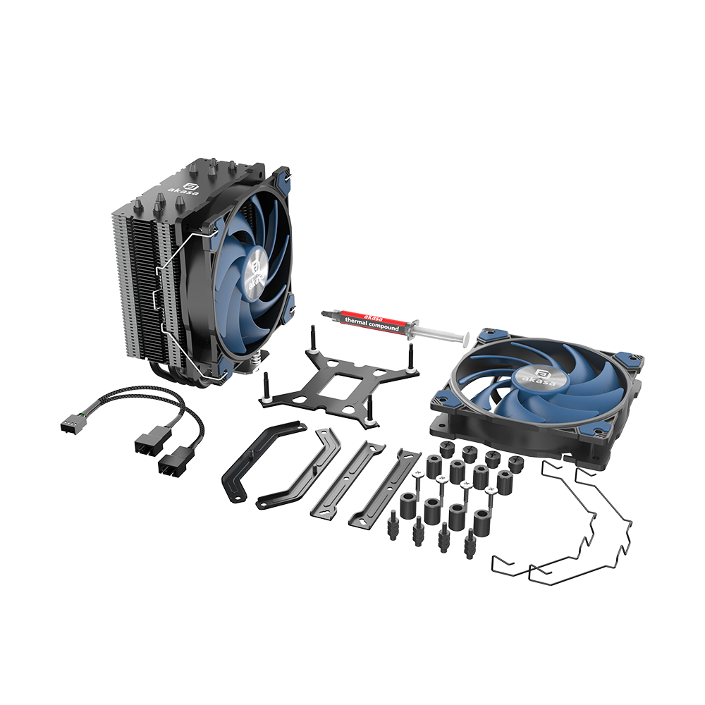 Ultra-performing premium dual fan CPU cooler fitted with sleek all-black heatsink and photic blue edition fan, intelligent PWM speed control 120mm fan and 4 copper pipes. Includes additional SC12 fan and smart splitter cable. Designed for CPUs with a maximum TDP of 210W.