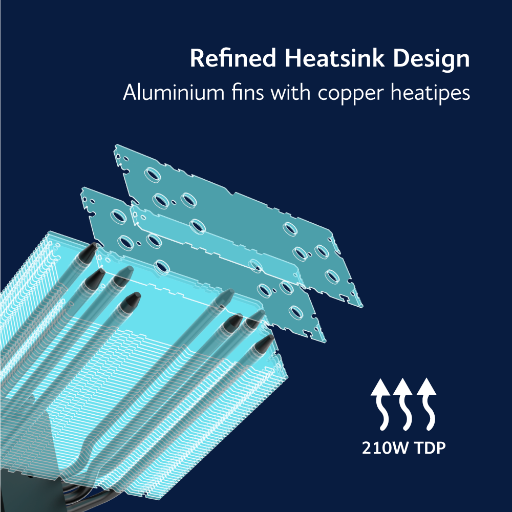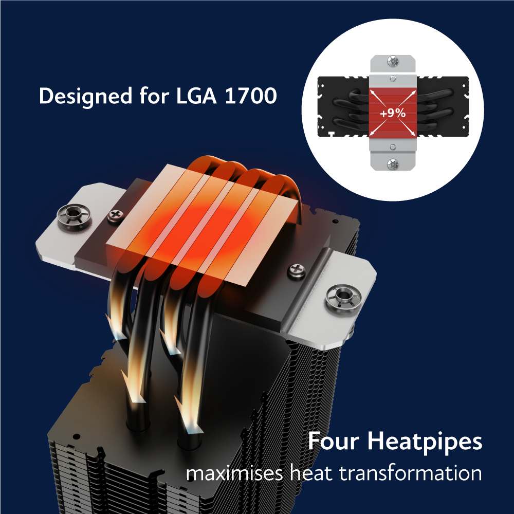 Highly conductive with Direct Contact Technology that maximises efficient heat transfer from the CPU to the fins.