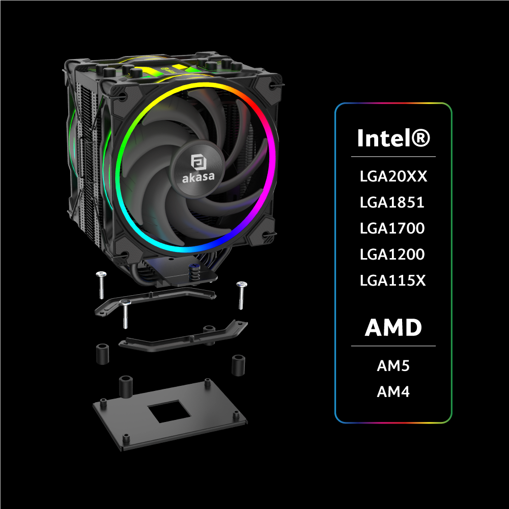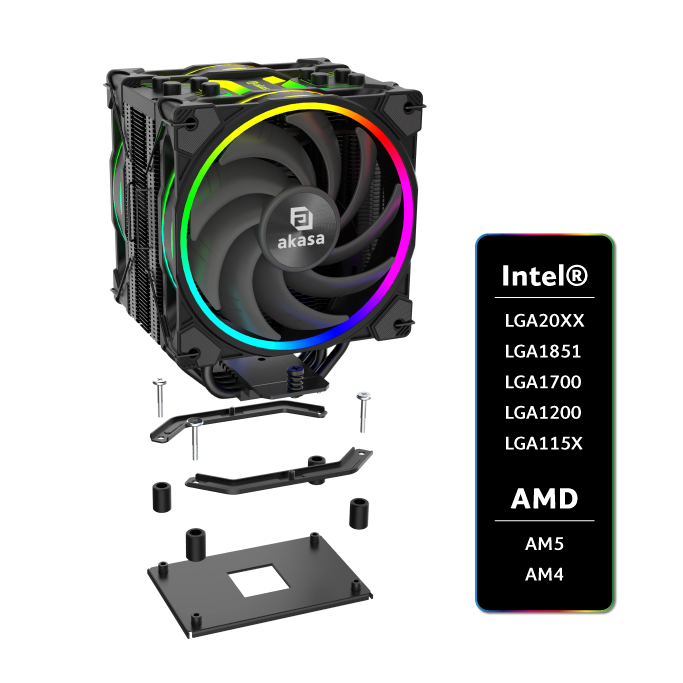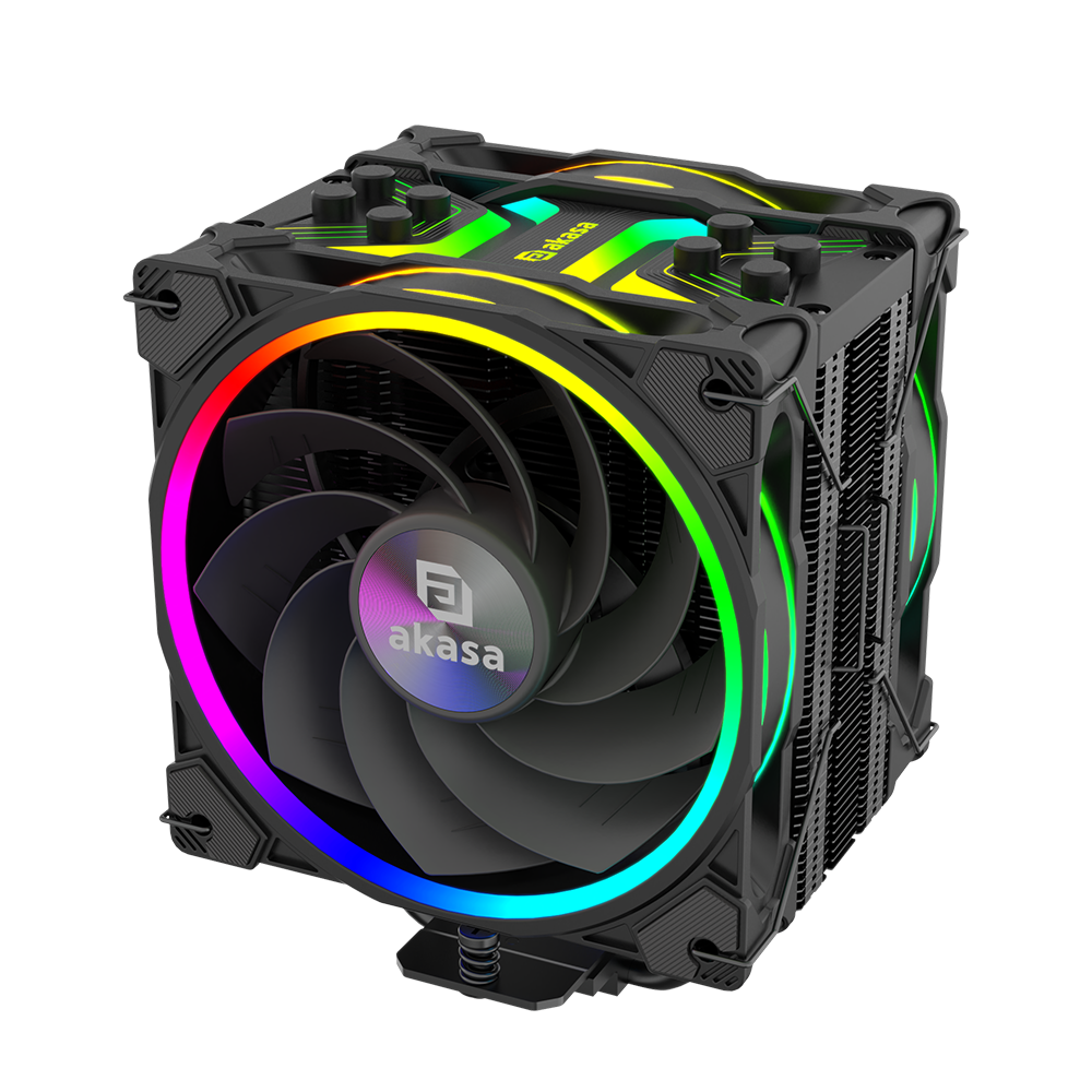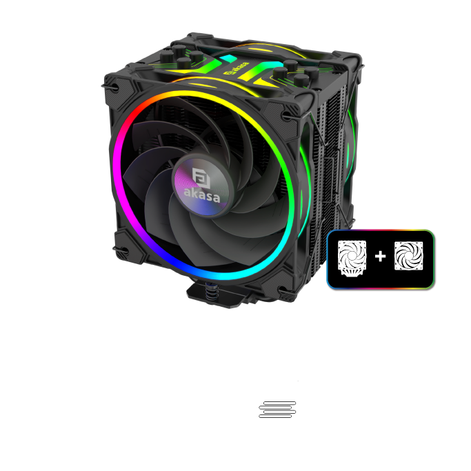 Ultra-performing premium dual-fan CPU cooler features full aRGB lighting and includes a reverse fan for an uni-directional flow, enhancing cooling efficiency. With dual 120mm fans, intelligent PWM speed control, and four copper heatpipes, it can handle CPUs with a maximum TDP of up to 210W.