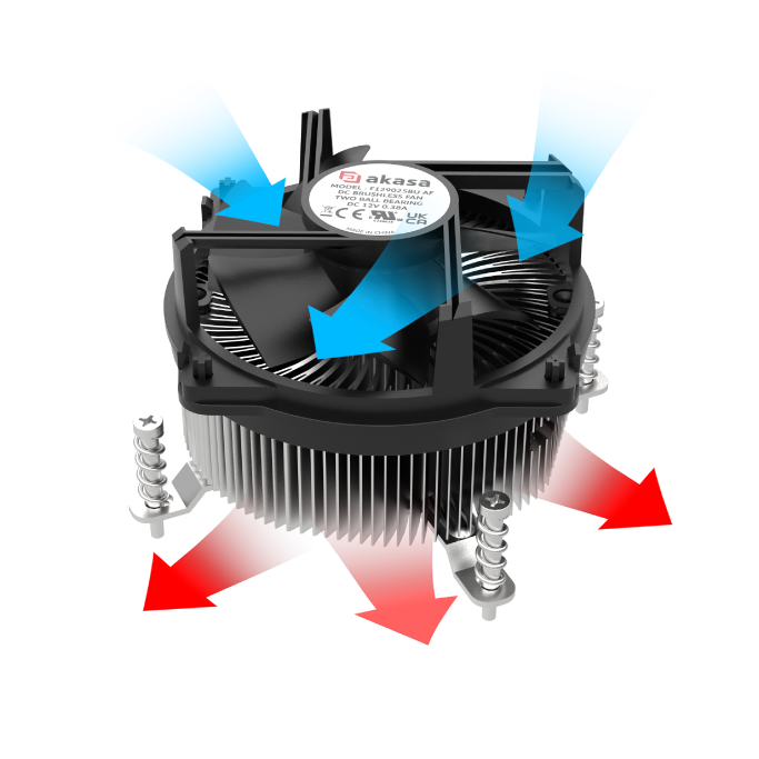 High-engineered aluminium heatsink features bi-ped fins and a large aluminium core base, ensuring maximum heat dissipation and thermal transfer. Designed to work with CPUs up to 100W TDP.